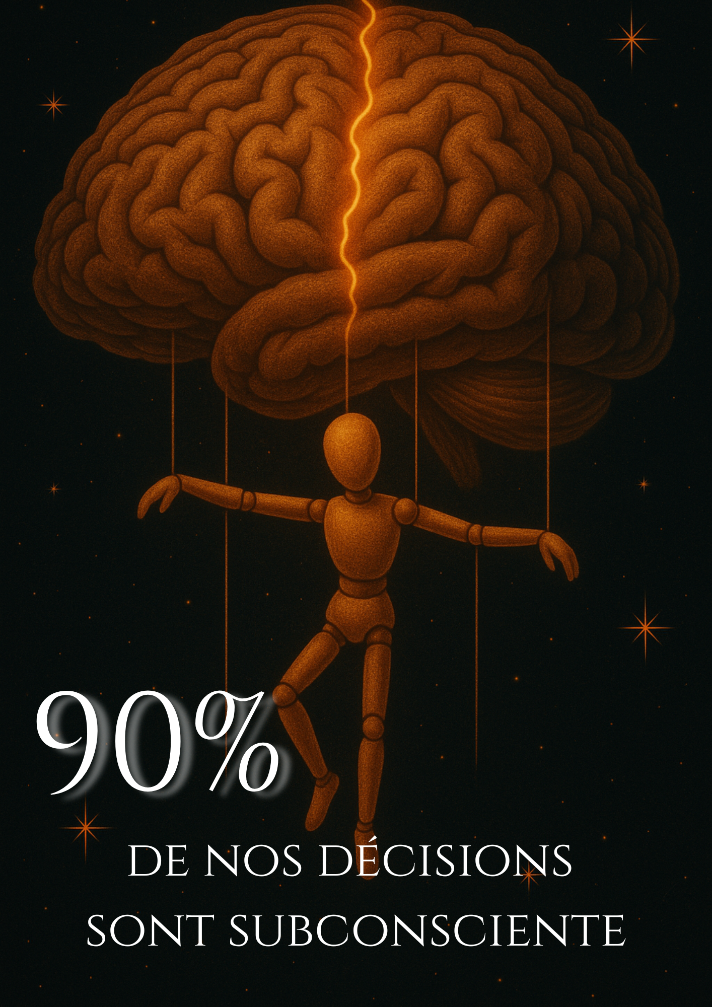 Plusieurs études scientifiques ont prouvé que 90 % de notre vie est dirigée par notre subconscient (tu respires grâce à lui, entre autres), et que notre conscience ne gère que 10 %.