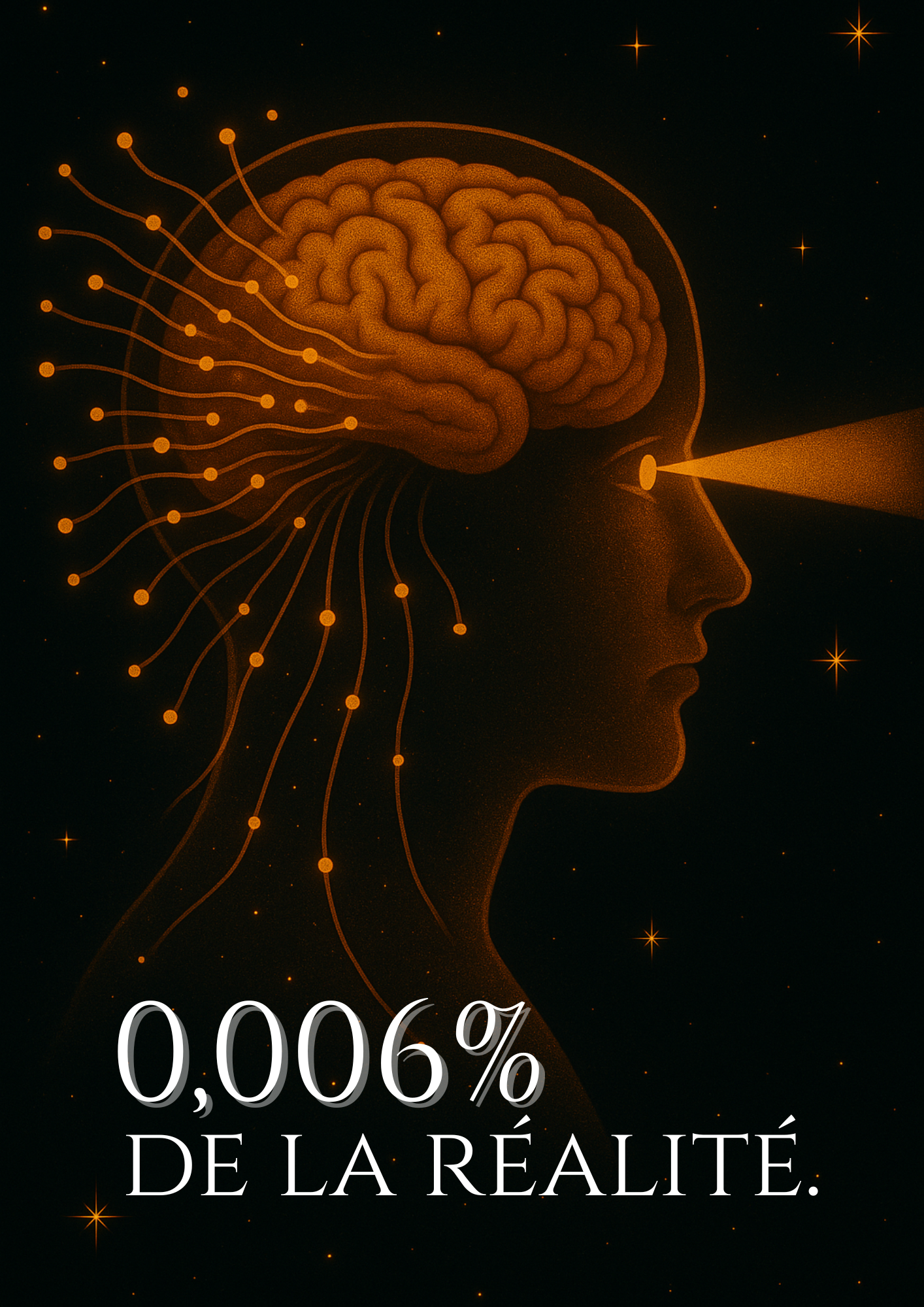 Ton système sensoriel reçoit 11 millions de bits/seconde. Ton esprit conscient n’en capte que 50 à 120. Soit 0,006 % de la réalité. 99,994 % t’échappent.Ce que tu crois "voir", "savoir", "comprendre"… n’est qu’un reflet biaisé, une illusion codée. (la fameuse matrice.. Elle n’est pas extérieure. Elle est intérieure)