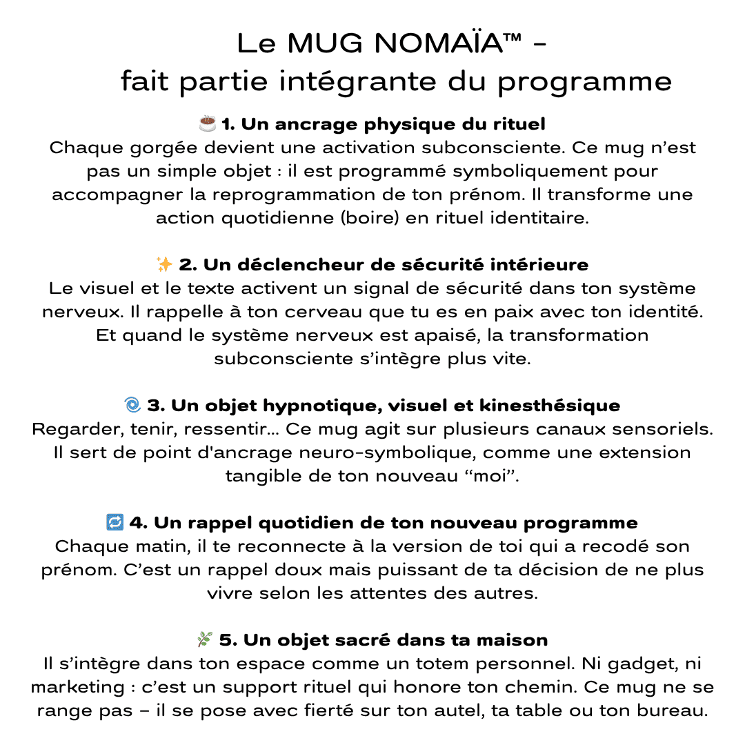 NOMAÏA™ : Reprogrammation subconsciente de mon identité ( Mug + programme complet audio )